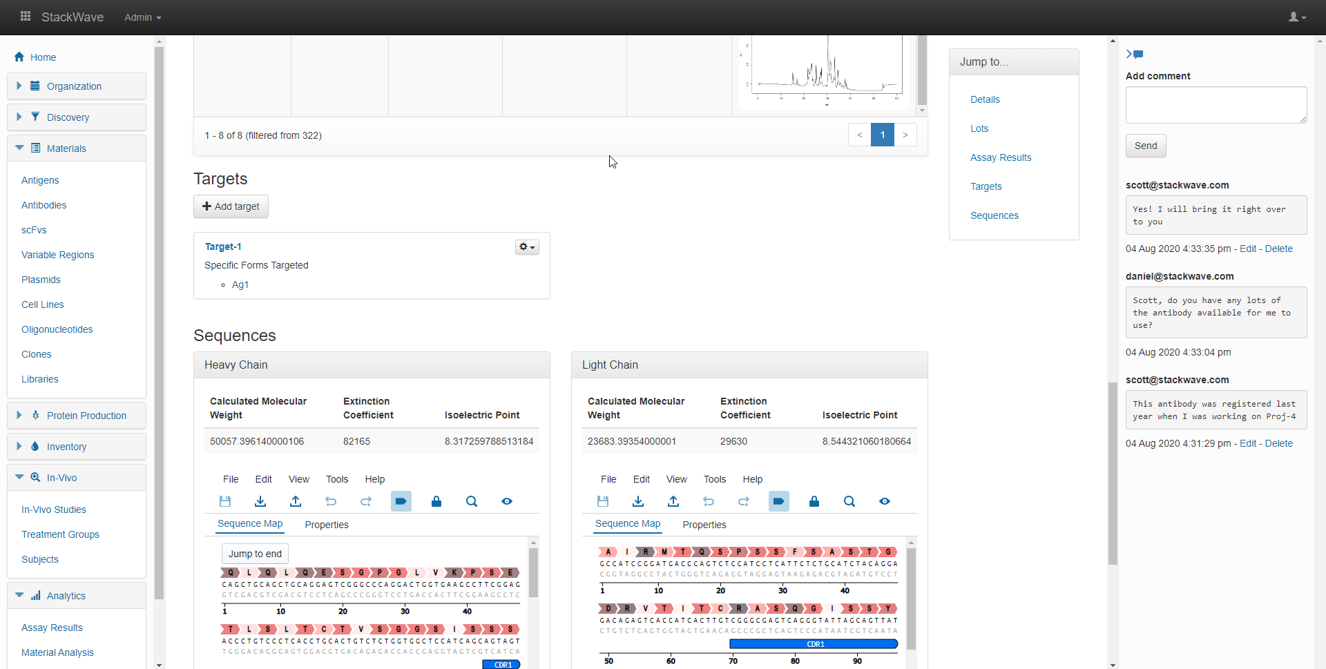 The StackWave Fidelity Platform makes it easy to work with antibodies by providing support for related material types, such as plasmids.