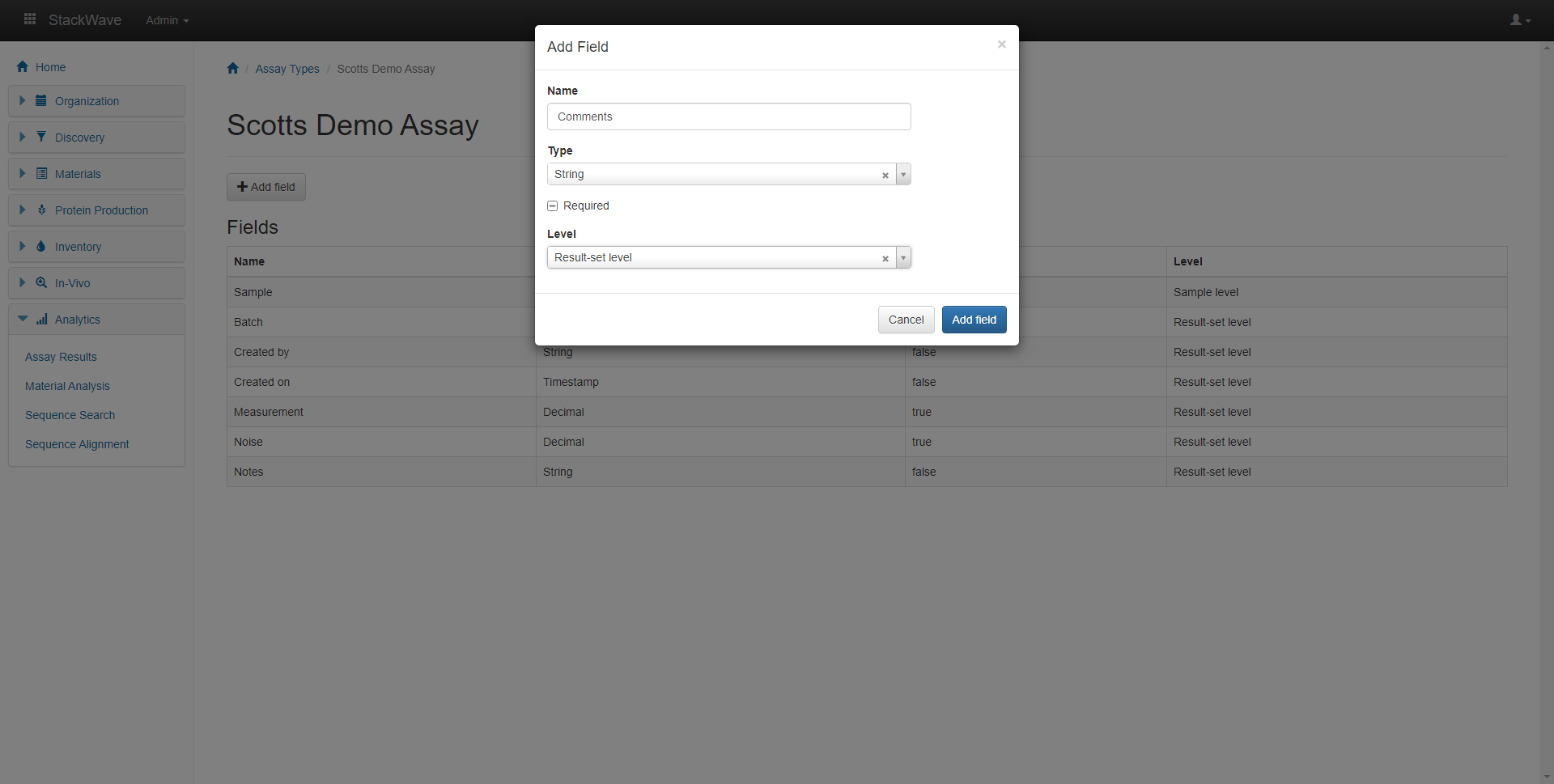 The StackWave Fidelity Platform provides tools for defining and deploying your own custom assay types, complete with with built-in support for pick lists and validation. Data ingest processors are available to simplify the process of importing non-standard formatted result files.