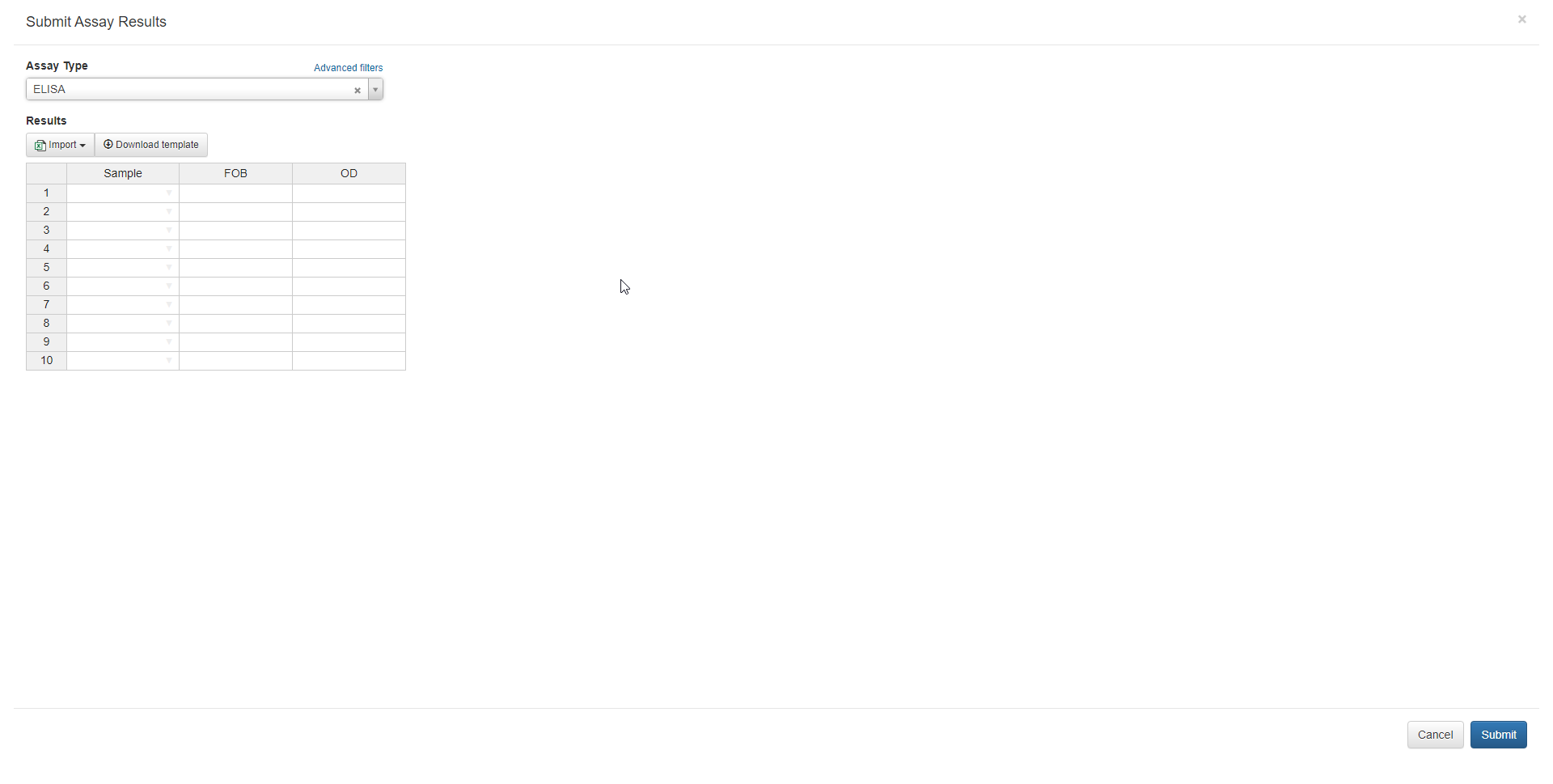When you are ready to import data manually, you can use our familiar and easy-to-use in-browser spreadsheet interface to upload your assay results.