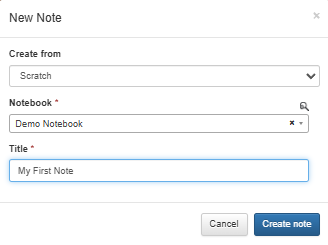 All notebooks are accessed in Affinity within the Notes module. Click on Notebook to begin. Click the plus sign on the upper-left side of the page to create a new note - this dialog will also allow you to create a new notebook. In the Notebook dropdown of the resulting modal, select New Notebook and enter a name for your notebook. Enter a name for your note, and click Create Note.